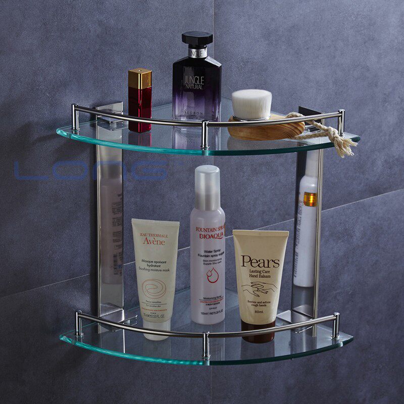 Single-double toilet steel-toughened stainless steel glass tripod bath room Supplies corner rack toilet sector rack-Taobao