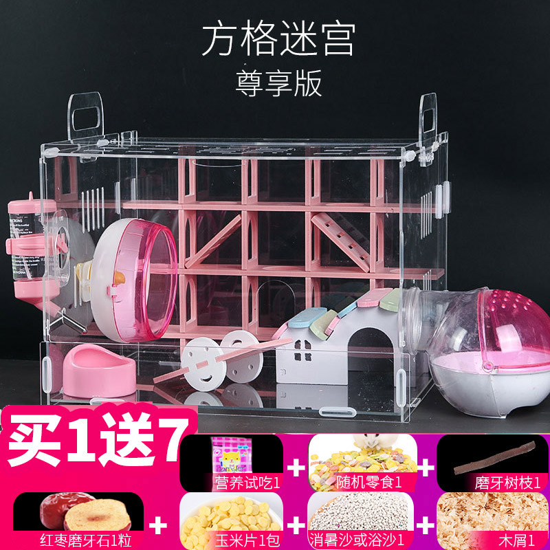 Hamster Cage Acrylic Labyrinth Toy Base Rearing Supplies Golden Silk Bear Double-deck Villa Pets Only Xinjiang