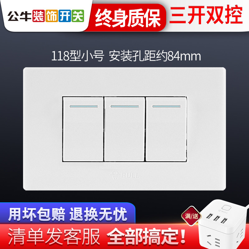 Bull 118 Type Concealed Wall Switch Socket two bits three open double cut panel Erlianz small rectangular home g04