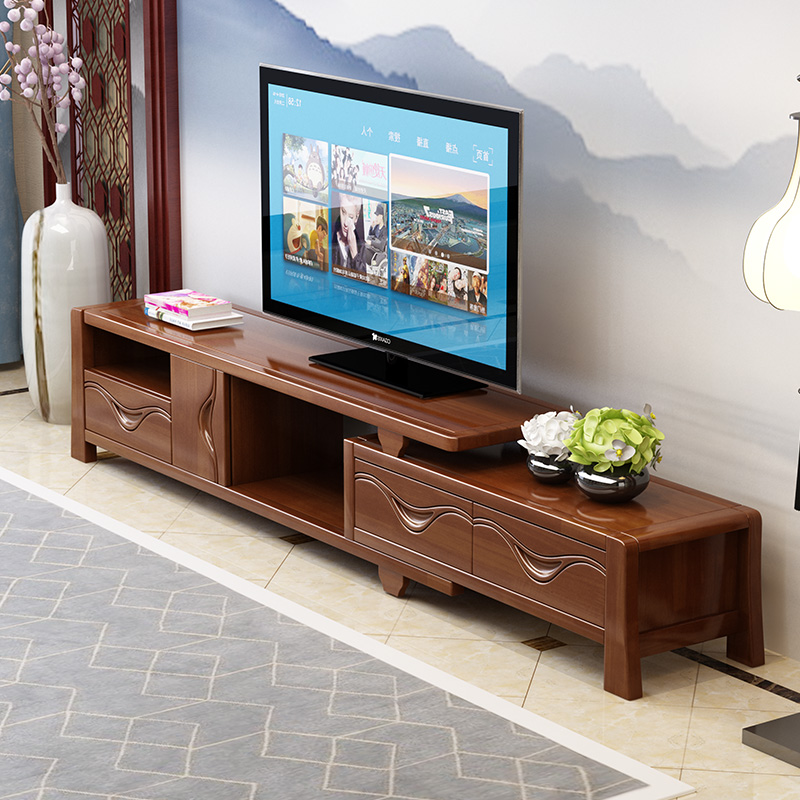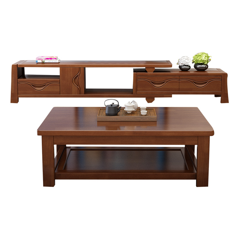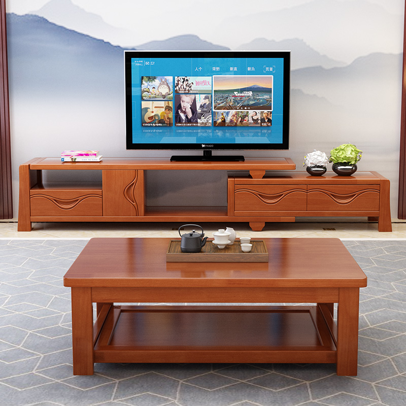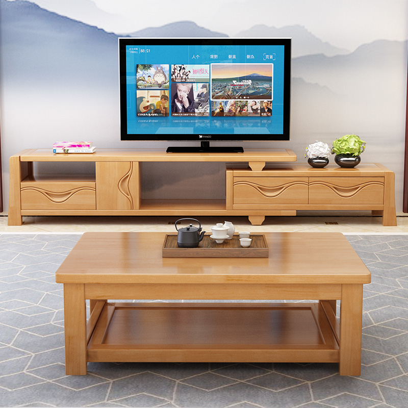 Small apartment Chinese solid wood TV cabinet coffee table combination modern minimalist living room household retractable floor cabinet low cabinet