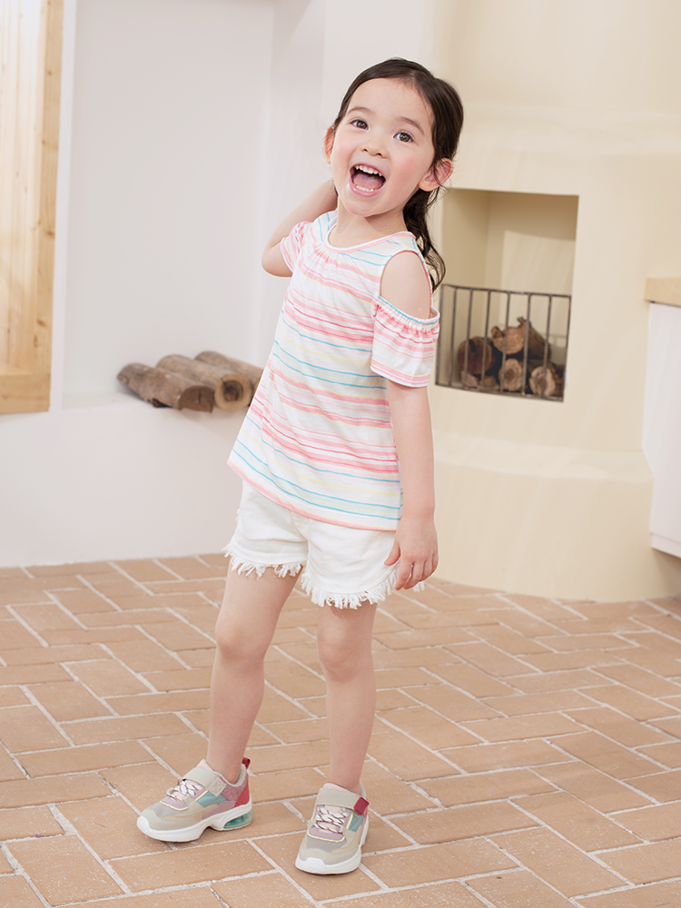 British children's T-shirt girls striped cotton strapless casual short-sleeved pullover top summer
