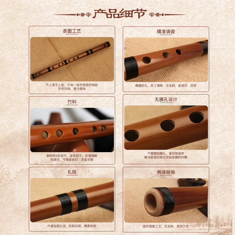 Film without film holes Short flute Flute Hard Bamboo Flute Beginner children with small musical instruments efg ancient wind vegetarian flute portable adults