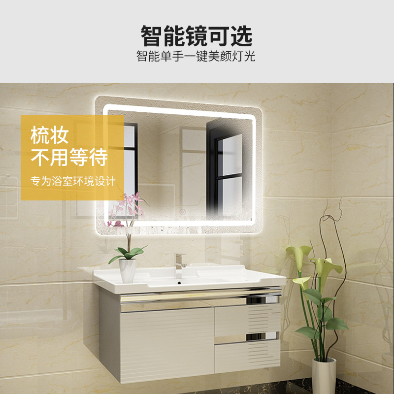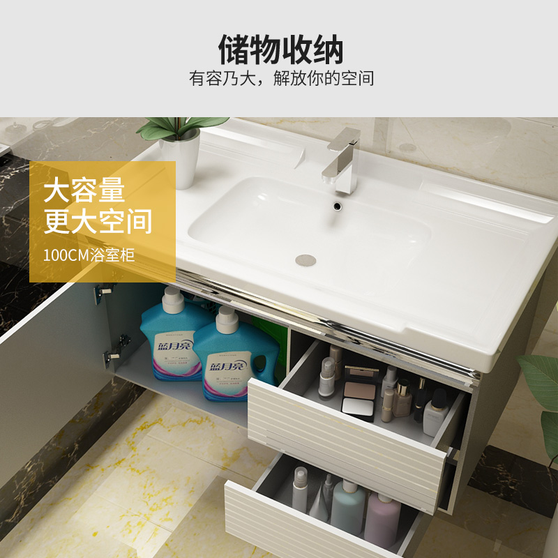 Modern simple stainless steel bathroom cabinet combination wash basin Hand wash wash basin sink storage cabinet white steel