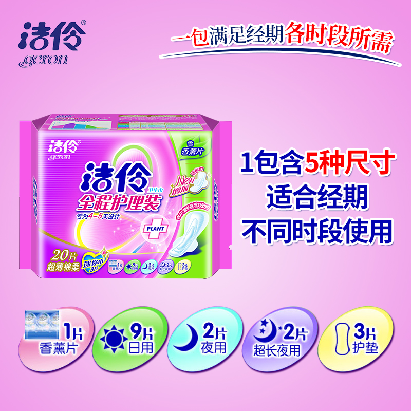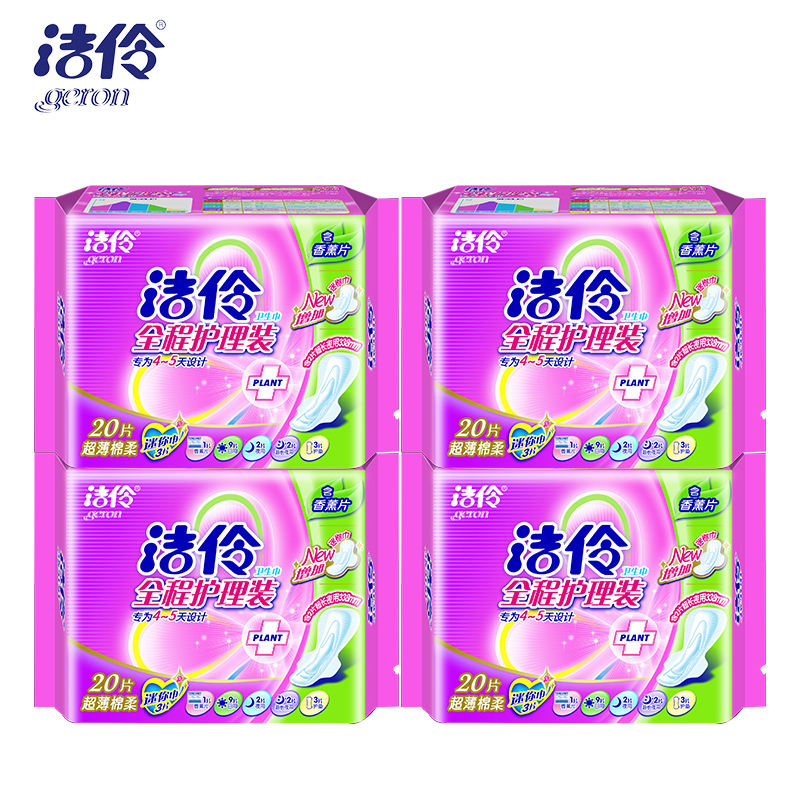 Jieling sanitary cotton Women's whole box day and night combination of cotton soft skin 4 packs of aromatherapy aunt towel full care