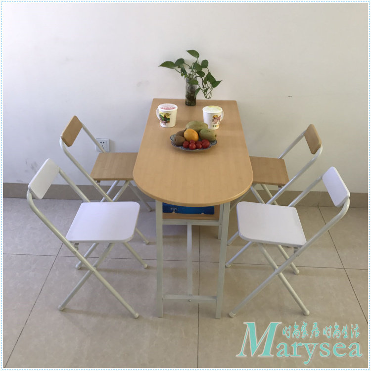 Small family type double dining table and chairs combined leaning against wall table lovers table simple home dining table accommodating type kitchen small table