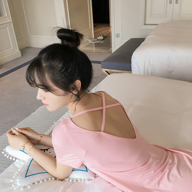 Nightdress women's summer modal cotton sexy pajamas short-sleeved one-piece dress open back temptation large size loose home wear