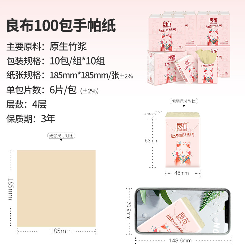 Good cloth 100 bag natural color paper handkerchief small bag paper towel portable whole box batch napkin tissue paper