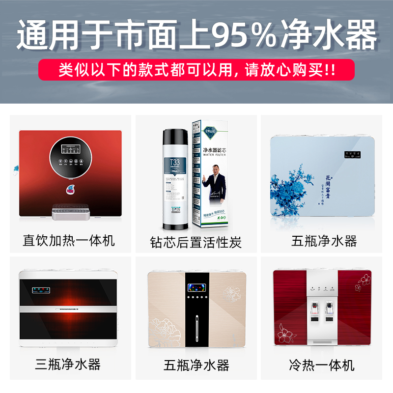 Water purifier filter element 10-inch flat mouth quick-connect T33 pure water machine universal rear activated carbon filter residual chlorine to adjust the taste