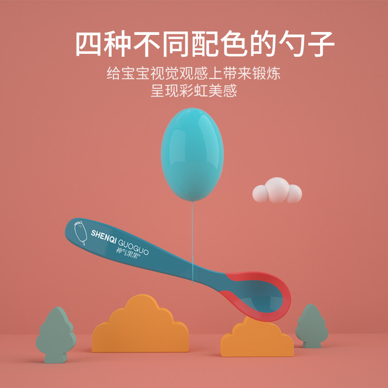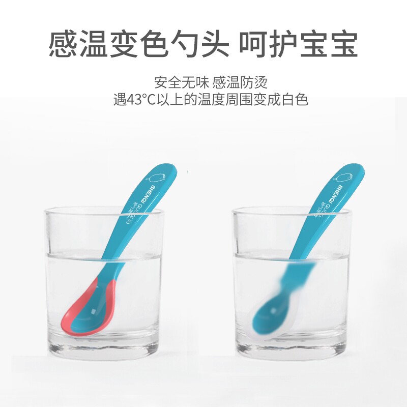 High temperature anti-scald discoloration baby rush warm spoon newborn baby spoon soft head feeding water to eat non-staple food learning to eat training