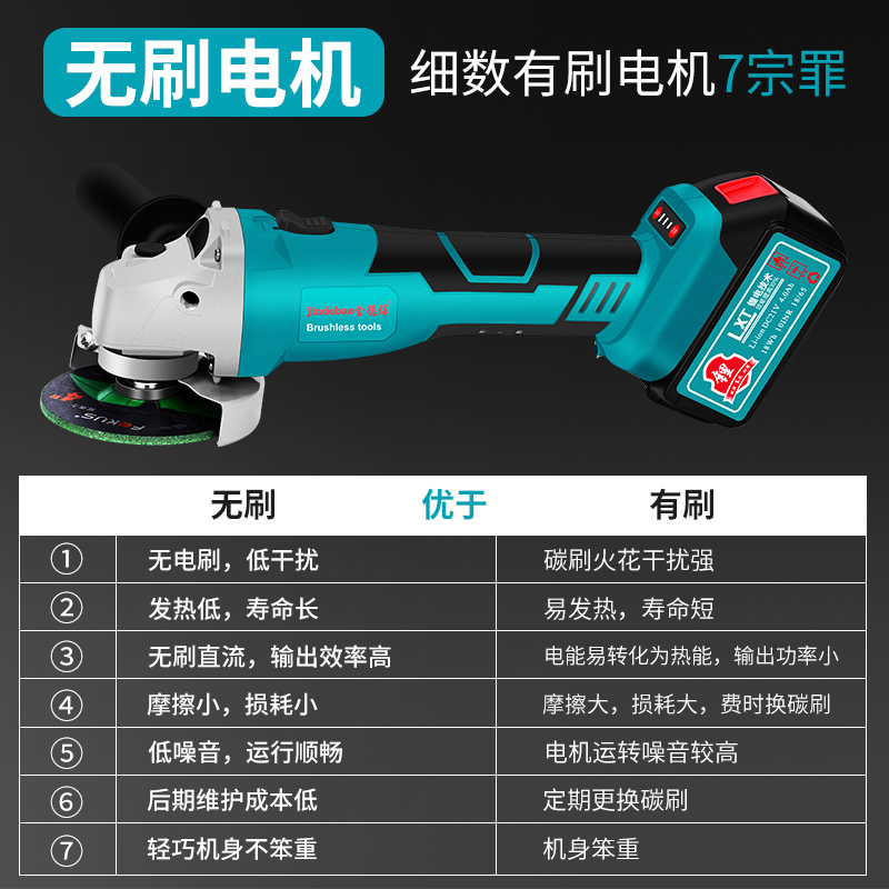 Flagship brushless corner mill 4.0Ah one electric one charge (send 16 pieces set) Flagship version brushless corner mill 4.0Ah two electric one charge (send 25 pieces set) Flagship version brushless corner mill 4.0Ah two electric one charge (send 16 pieces set) + chain saw bracket Flagship version brushless angle grinder 6.0Ah one electric one charge (send 16 pieces set) Flagship version brushless corner mill 6.0Ah two electric one charge (send 25 pieces set) Flagship version brushless angle grinder 6.0Ah two electric one charge (send 16 pieces set) + chain saw bracket
