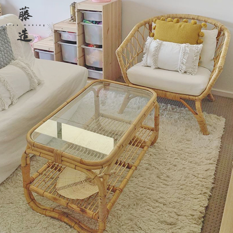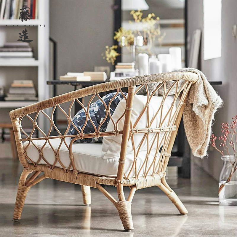 Rattan chasha chair ins real rattan single chair Nordic minimalist cane chair Leisure chair Balcony Net Red read chair