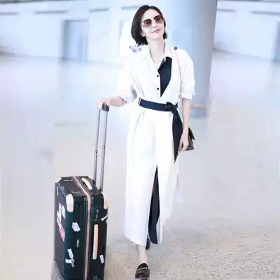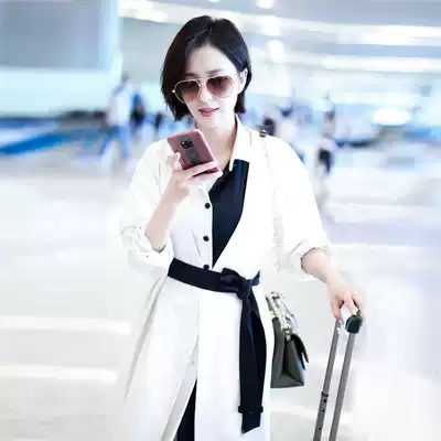 2021 autumn star Tong Liya the same loose dress medium and long version temperament thin shirt chiffon skirt women