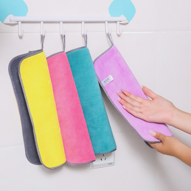 Household cleaning and absorbing rags are not easy to drop hair household rubbing and thickening coral velvet kitchen is not easy to stain oil dishwashing cloth