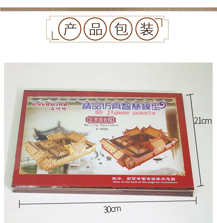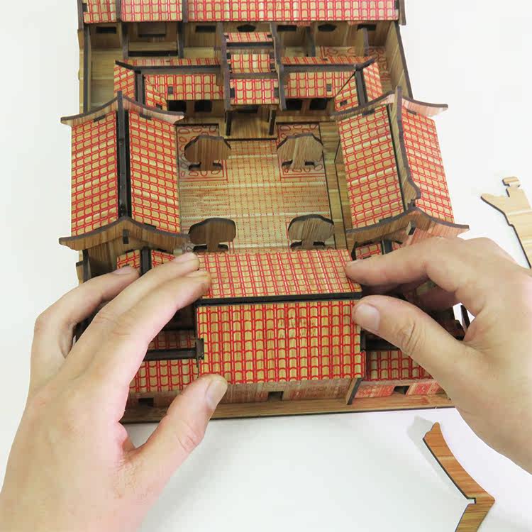 Beijing Siheyuan 3D three-dimensional puzzle adult laser cutting wooden antique architectural model handicraft decoration