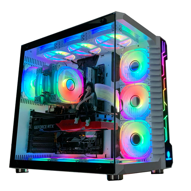 Desktop computer computer case fan 12cm water cooling heat dissipation temperature-controlled divine light rgb mute synchronous LED double aperture powder