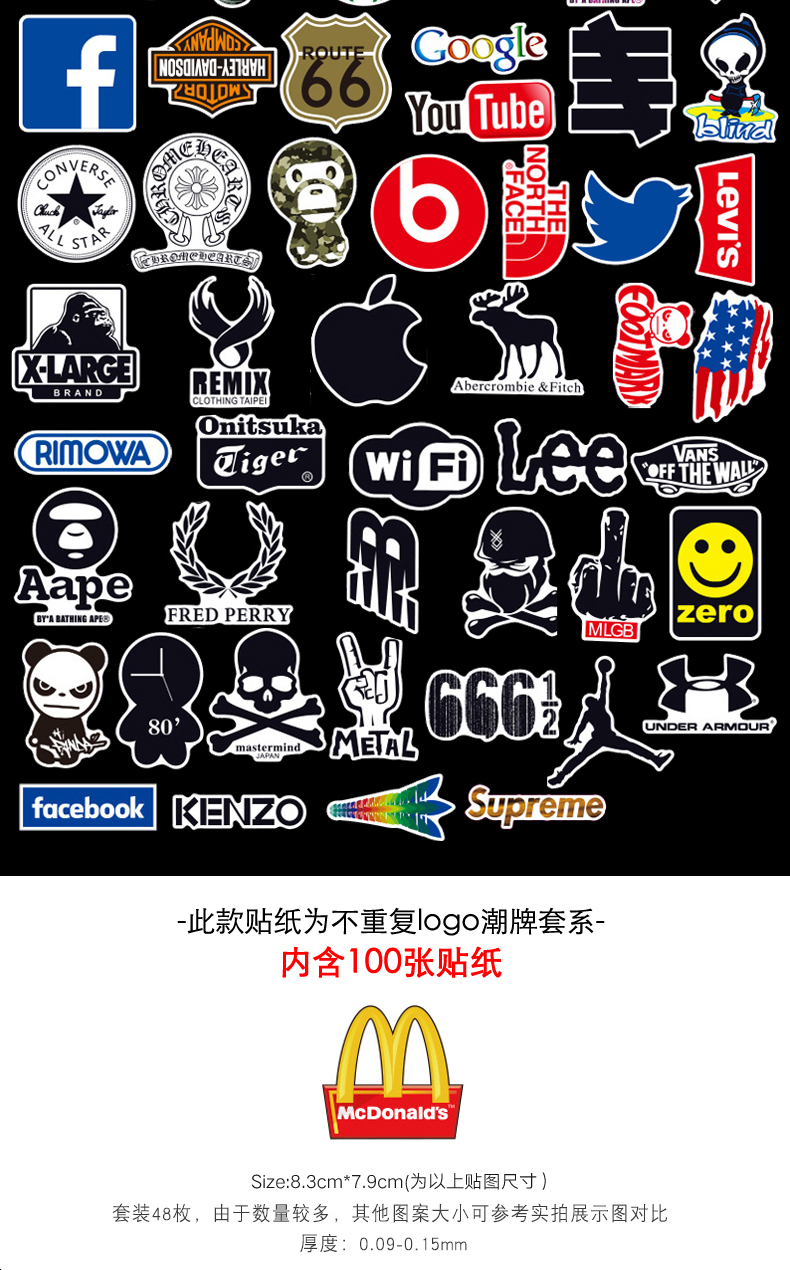100 Tidal Card Logo Suitcases Stickers Waterproof European And European Brands Suitcase Personalities Laptop Stickers Deco GUITAR SKATEBOARD Guitar Skateboard Pull-box Decorative Painting for men and women electric car stickers
