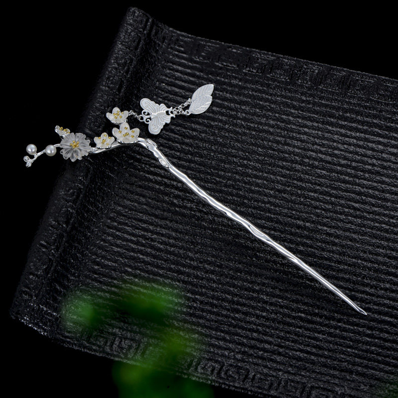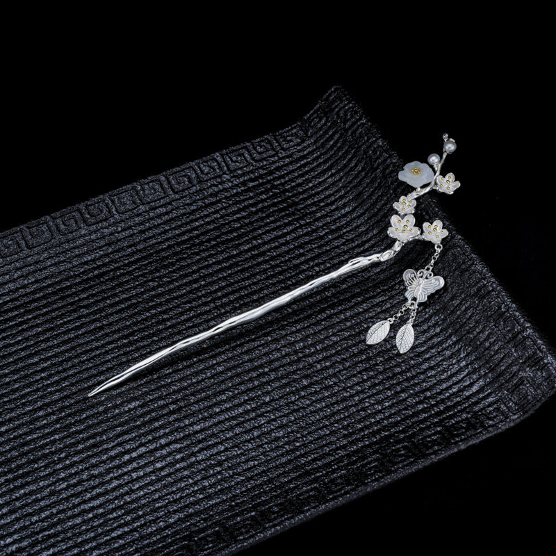 Very Thai s925 silver plum hair hairpin female ancient wind pace rocking disc hair hairpin Han Fu Qipao Chinese Style Wind Head Decoration Hair Accessories