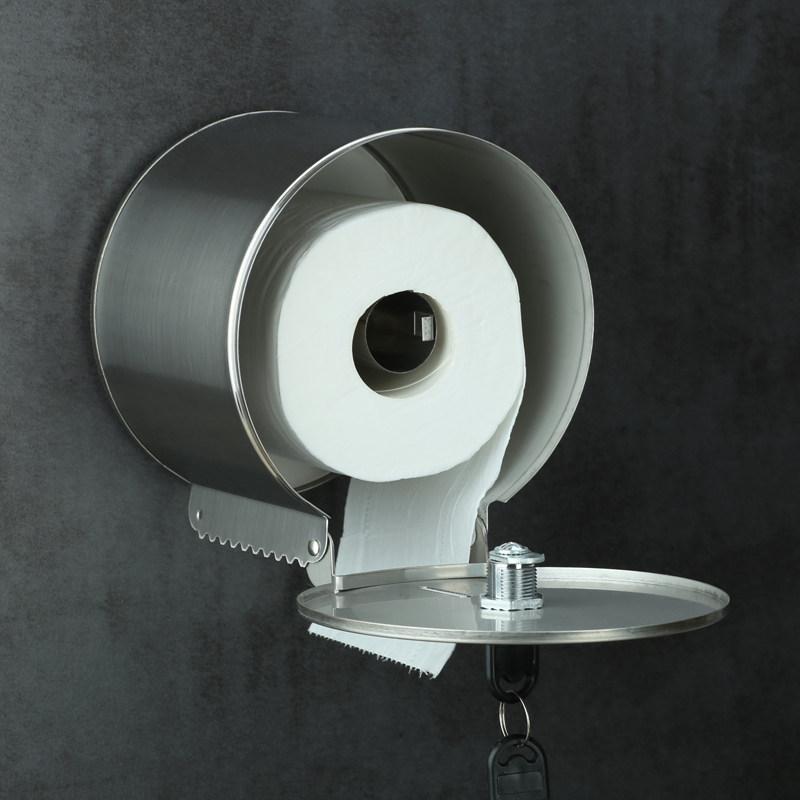 Stainless steel lockable small roll paper box Powder room toilet paper box tissue holder Toilet waterproof roll toilet paper holder Creative hole-free