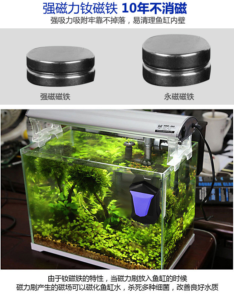 Fish cylinder brush Magnetic brush strong magnetic algae removal glass brush cleaning cleaning tool fish tank wiper double-sided cleaning brush
