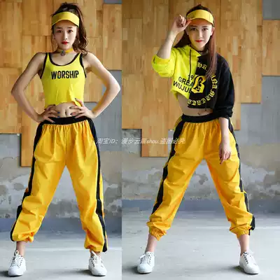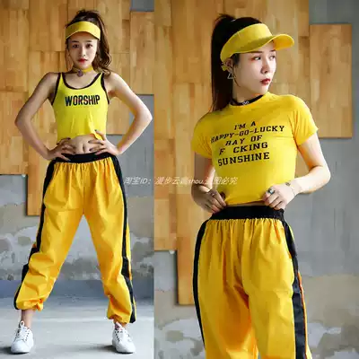 Jazz dance sports dance pants Loose casual practice pants Modern dance performance suit set yellow hip-hop hip-hop dance suit