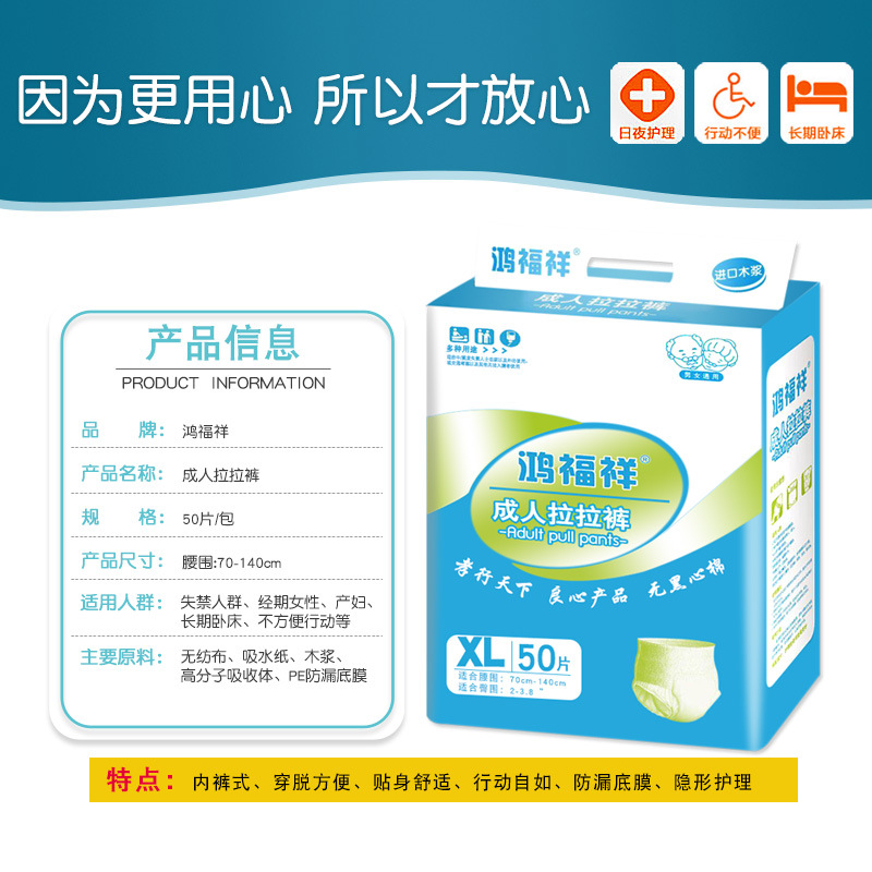 Hon Fuxiang Adult Lara pants Elderly paper Diaper Diaper not wet for men and women Elderly men with XL Increase Number of Thick Diapers