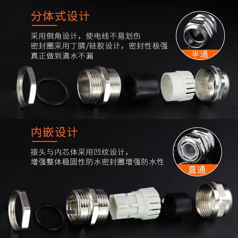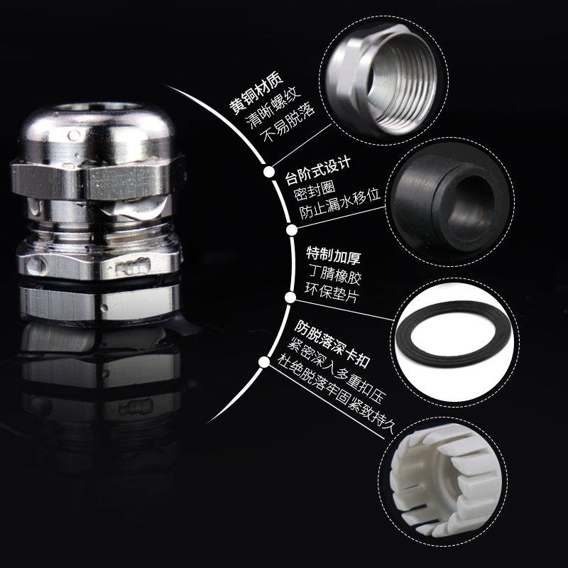 Metal cable waterproof connector Brass nickel plated locking Glan head Metric M fixed head Copper connector packing letter