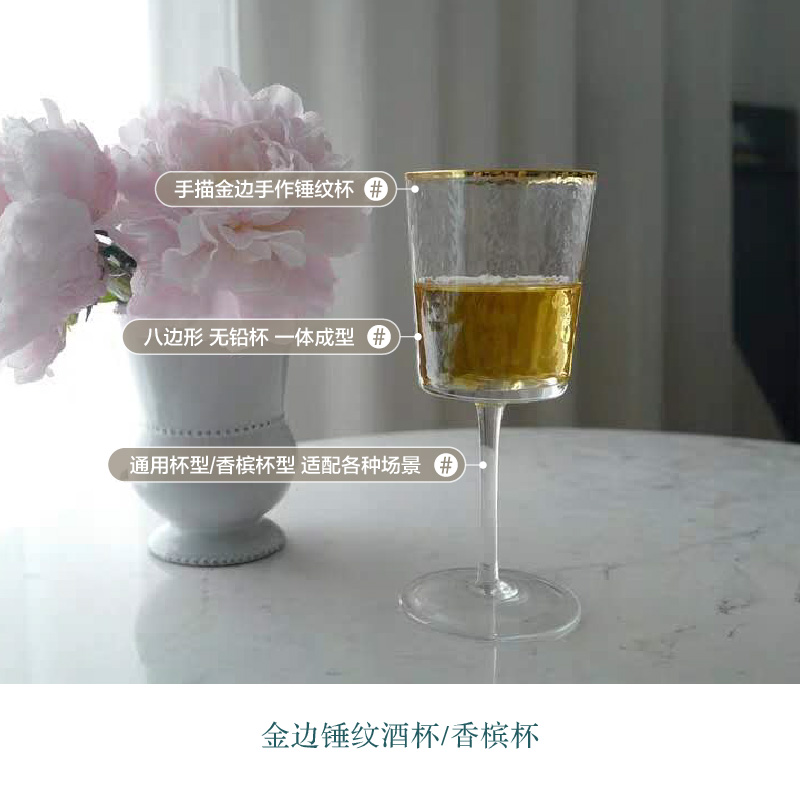 Good-looking Phnom Penh handmade hammered edge champagne glass red wine glass grape wine glass lead-free cup integrated molding