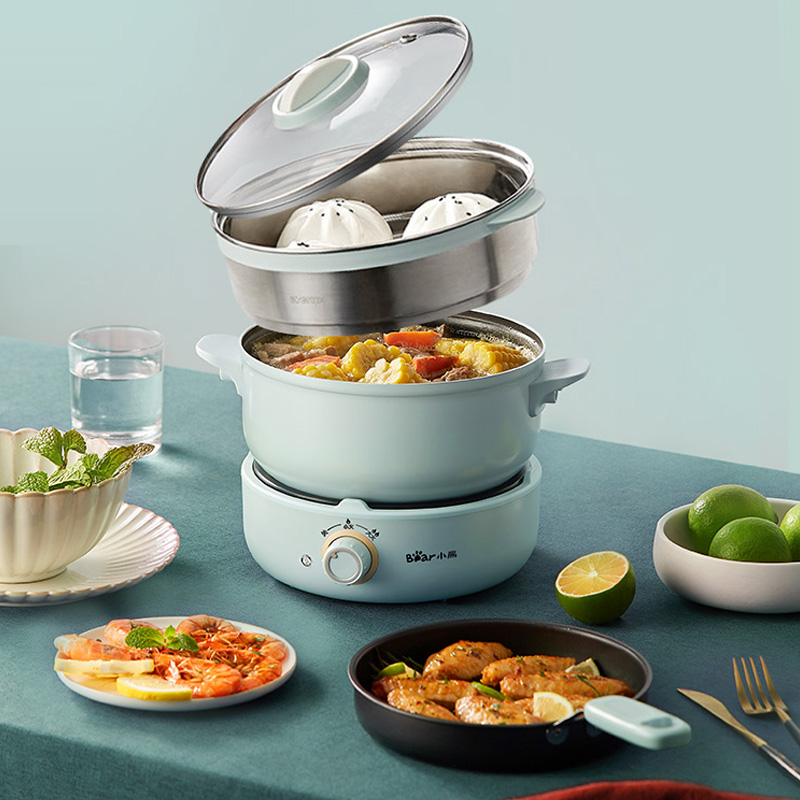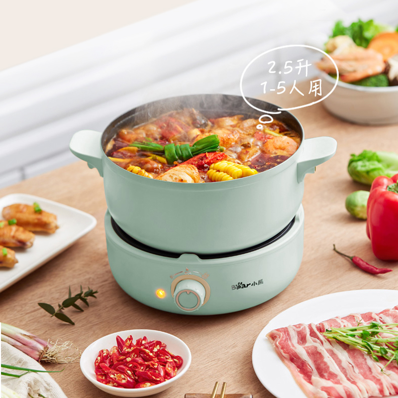 Bear electric hot pot quick cooker Household two-piece multi-function electric frying and cooking pot Small dormitory small electric pot