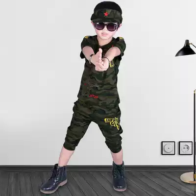 Boys' summer suit 3 children's camouflage suit 4 Sports 5 cotton two-piece set 6 military uniform 7 handsome 8-year-old children's clothes