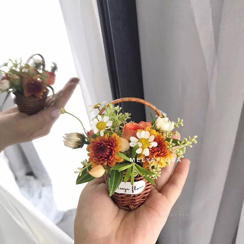 Mini palm flower basket Cute sweetheart flower basket Dry flower flower arrangement Flower small flower basket with hand gift return decorative basket