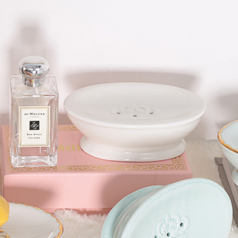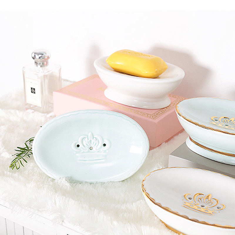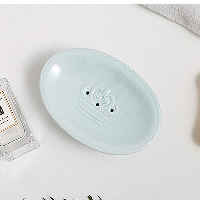 Soap Box O Style Drain Ceramic Soapbox Creative Soap Dish Oval Bathroom Double soapy Soap Rack Bathroom