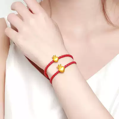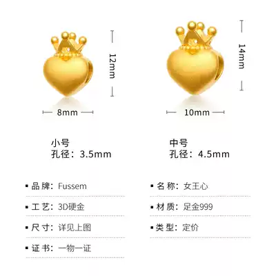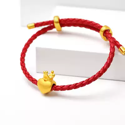 999 gold crown love transfer beads gold hand Pure Gold Life heart shaped red rope female loose beads 3D hard Gold
