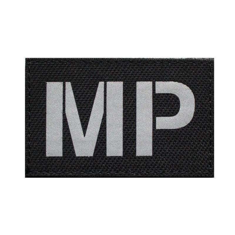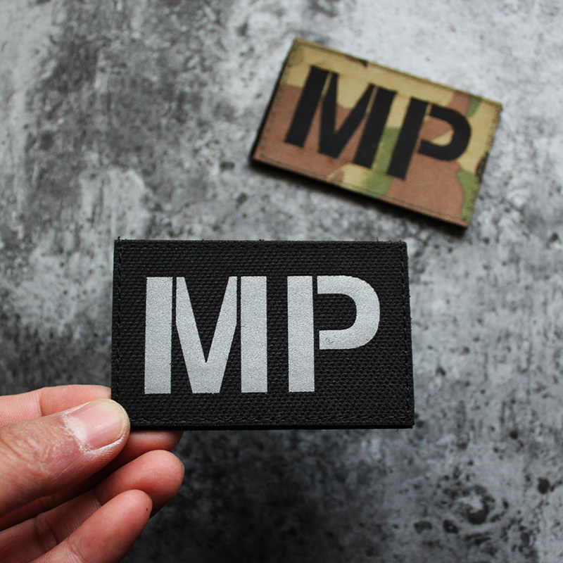 MP black and white letters can be reflective MP camouflage black letters non-reflective MP both need MED black and white letters can be reflective MED camouflage black letters non-reflective MED need both