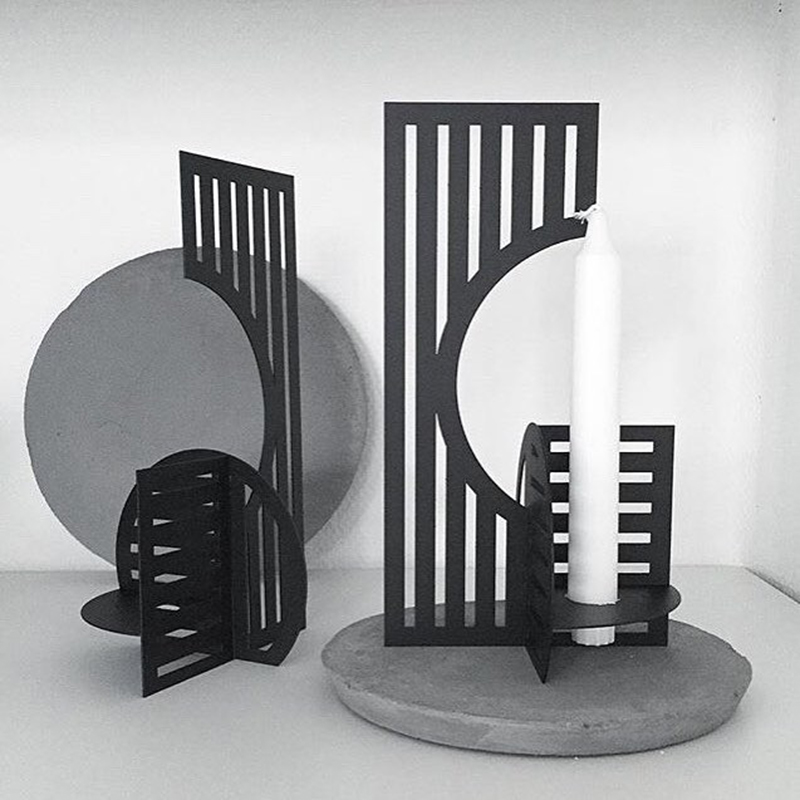 Denmark Kristina Dam black candlestick geometric line ornaments decoration Bauhaus style ins minimalist candle