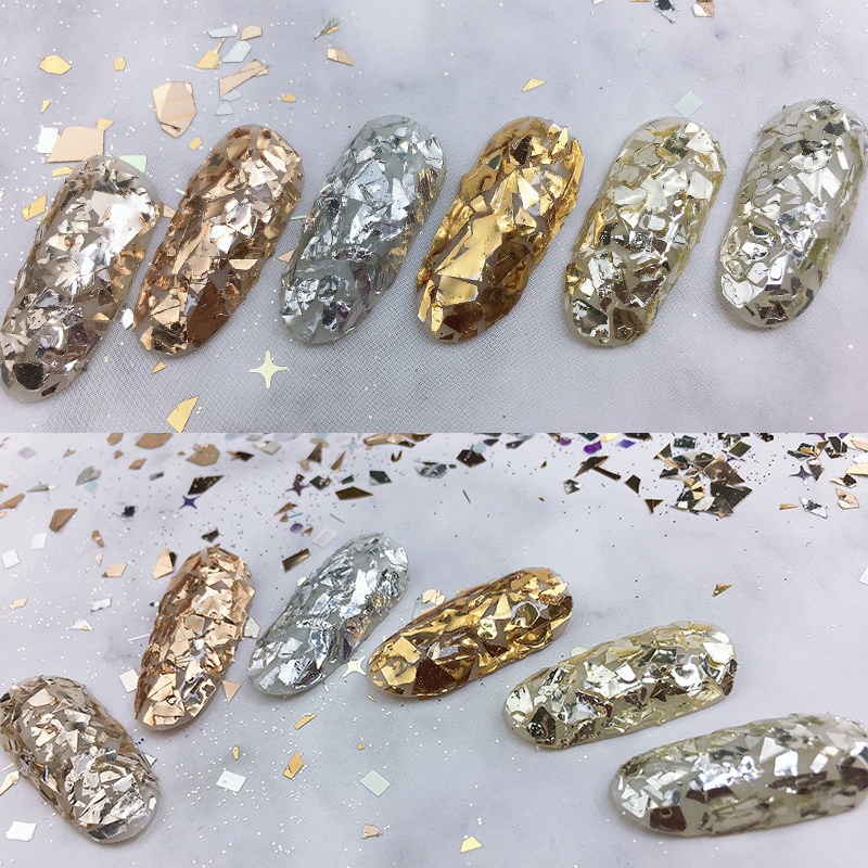 Cudi Nail Glass Paper Fragments Shake Fire Net Red Sheet Irregular Candy Nail Decoration Stickers