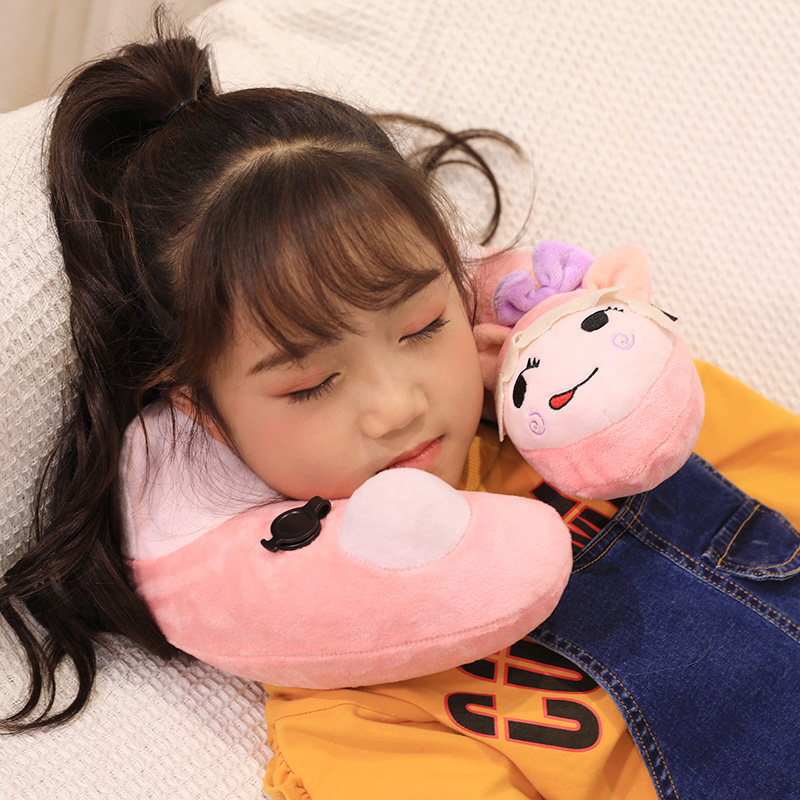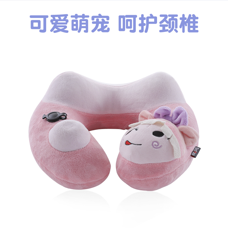 Business travel baby children's U-shaped pillow press inflatable crystal fleece skin-friendly comfort neck protector cute baby travel pillow