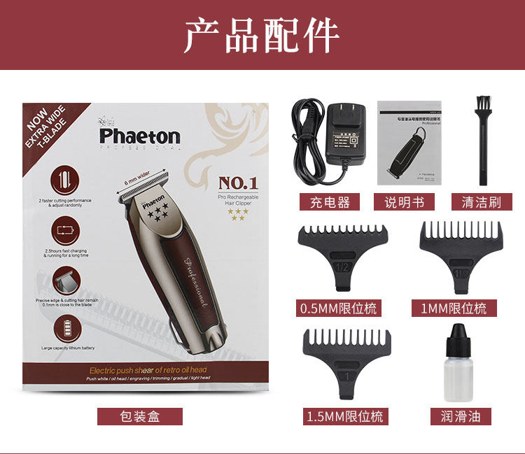 phaeton Five Star Retro Oil Head Electric Push Charging Sculpture Push 0 knife Head Push Hairbar