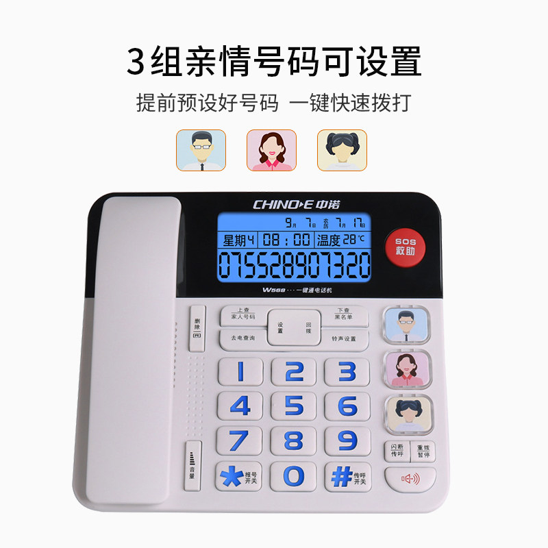 China Nauano Seniors telephone Home Phone Push-to-talk Dial big bell Large-ring large screen Display large button Font W568