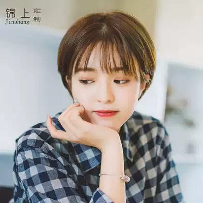 Wig women short hair net Red real hair headgear wig set female round face real hair silk short hair shape full head cover type