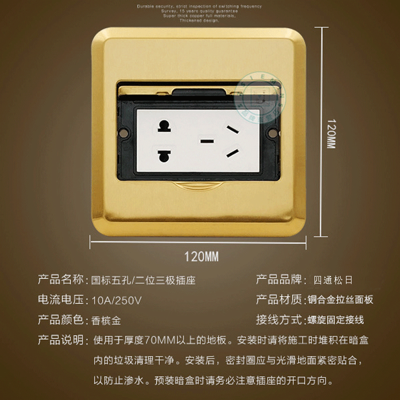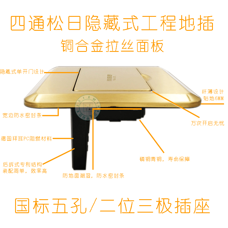 Four-way Songi ground socket hidden ground plug project floor socket all copper waterproof single door five-hole ground plug
