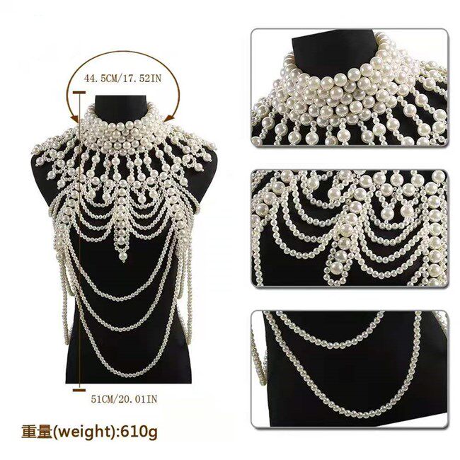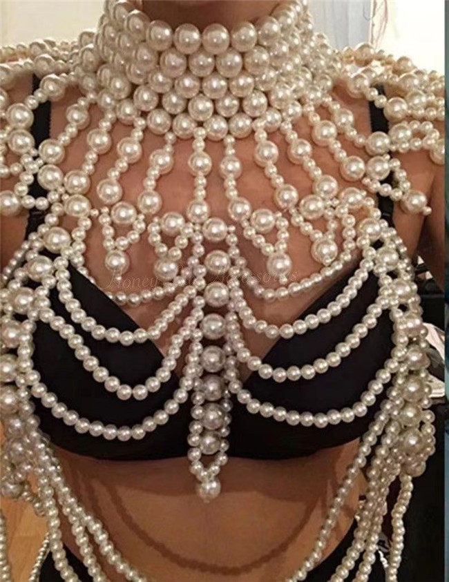 Pearl Shawl Body Chain Luxury Handmade Beaded Pearl Vest Camisole Dress Large Necklace Costume