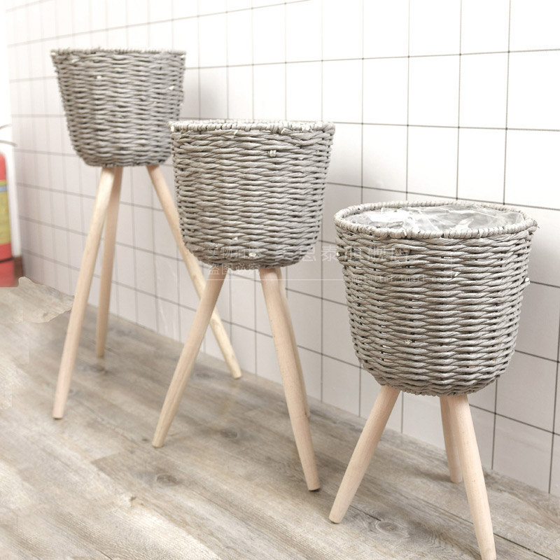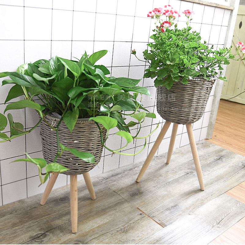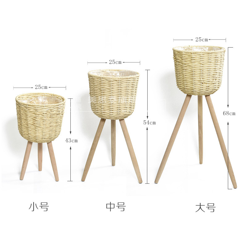 Nordic flower pot floor rattan woven grass woven woven flower basket Creative flower rack Simple decorative Golden Ge flower pot rack
