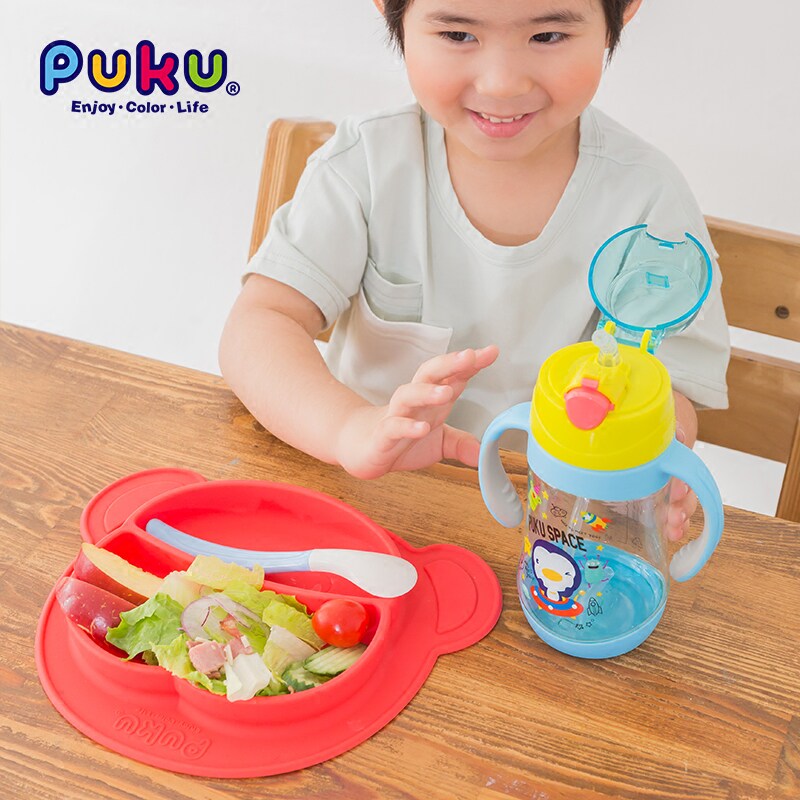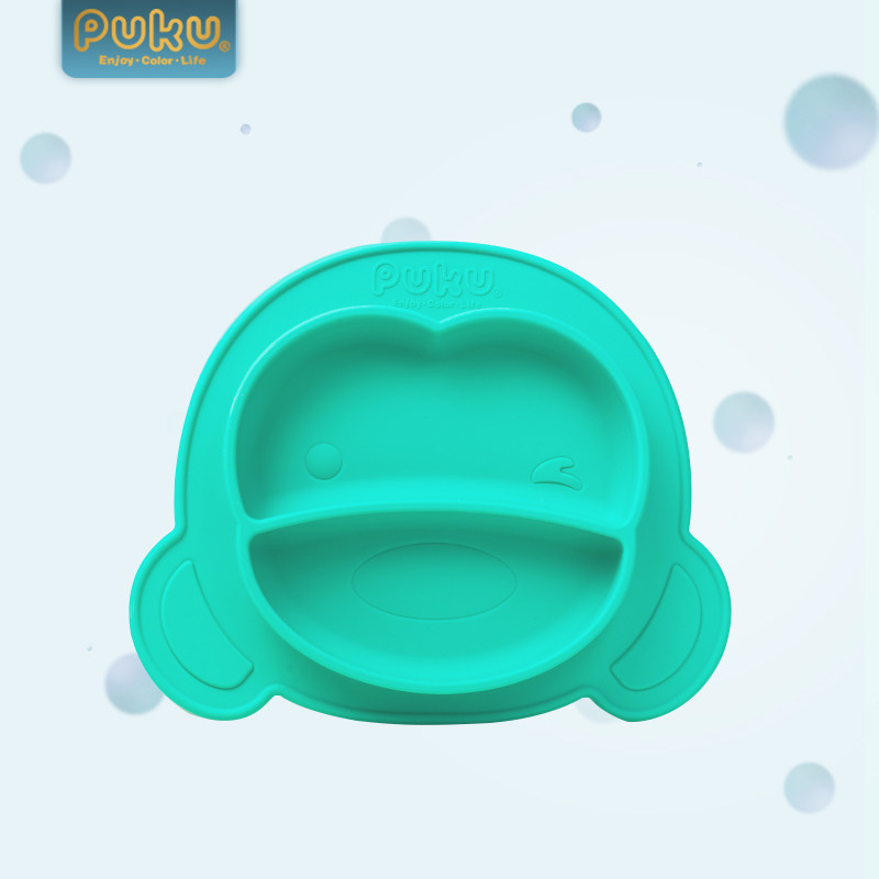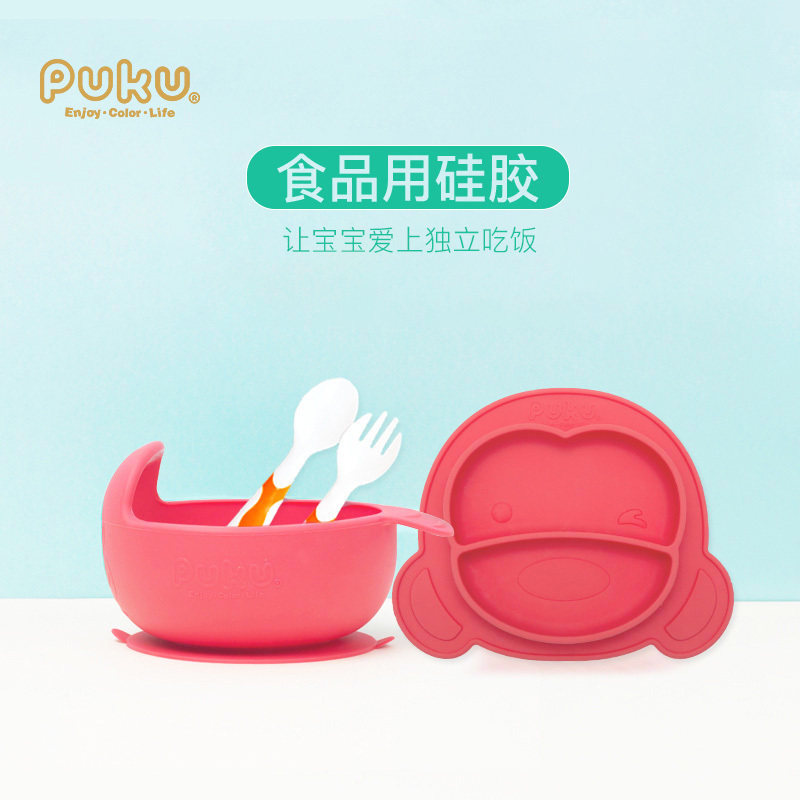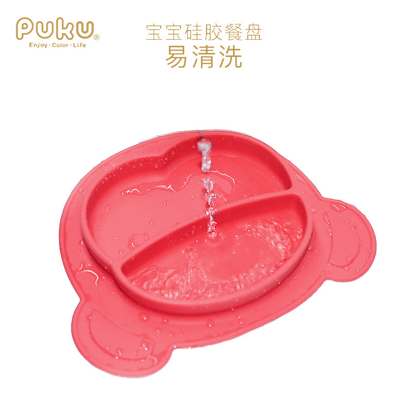 PUKU baby silicone dinner plate children's non-slip anti-fall anti-overturning separate edible portable baby plate bowl