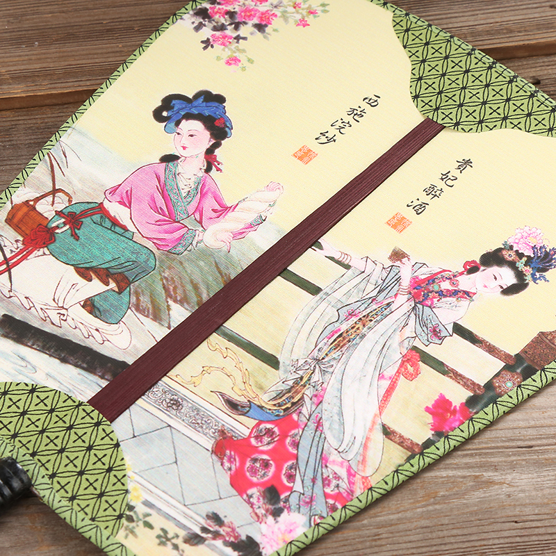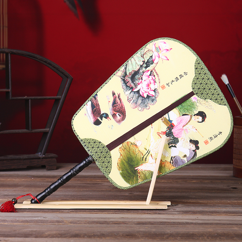 Vintage double-sided pattern palace fan group fan Square antique court fan Banana fan Dance fan Chinese style prop fan