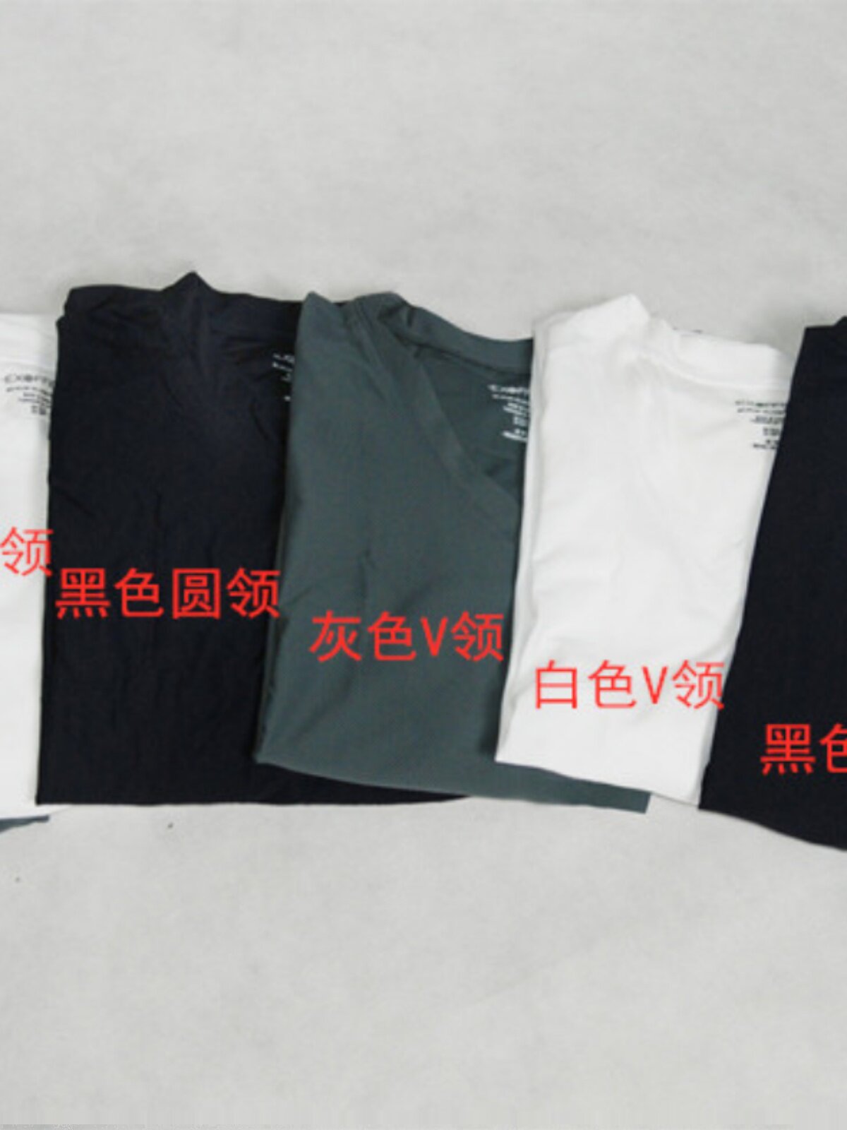 Black round neck, gray round neck, sea blue round neck, dark blue round neck, white round neck, black V-neck, gray V-neck, spliced black and red, spliced carbon gray, spliced fire hydrant, spliced