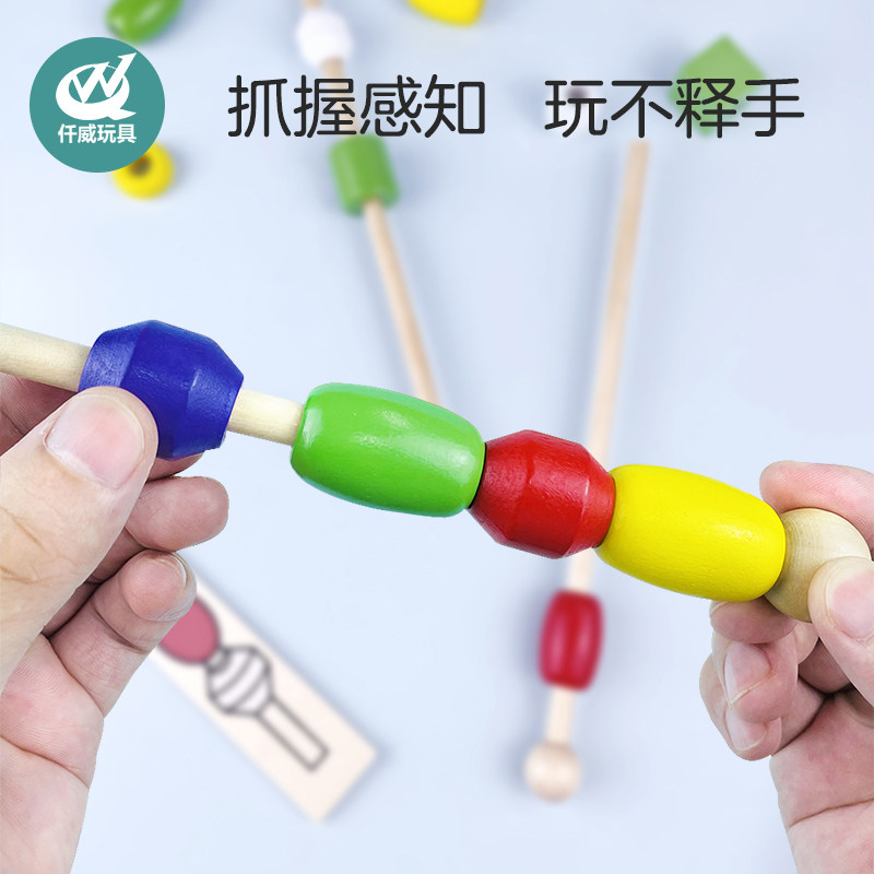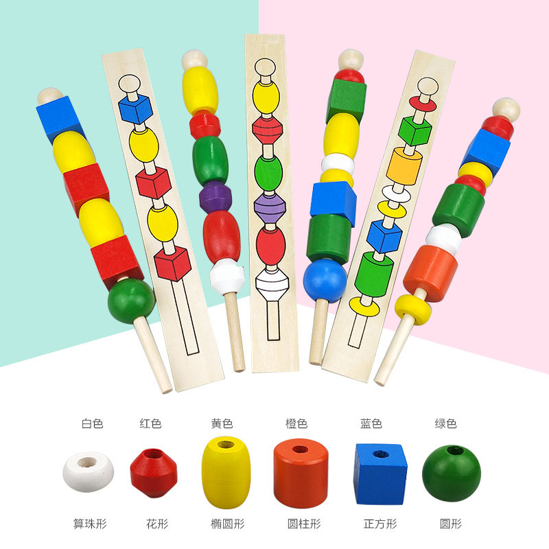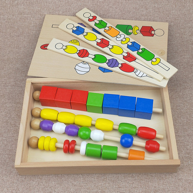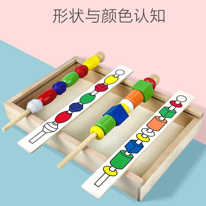 Montessori intelligence wooden beaded box shape color beaded box infant early education educational toys Montessori teaching aids