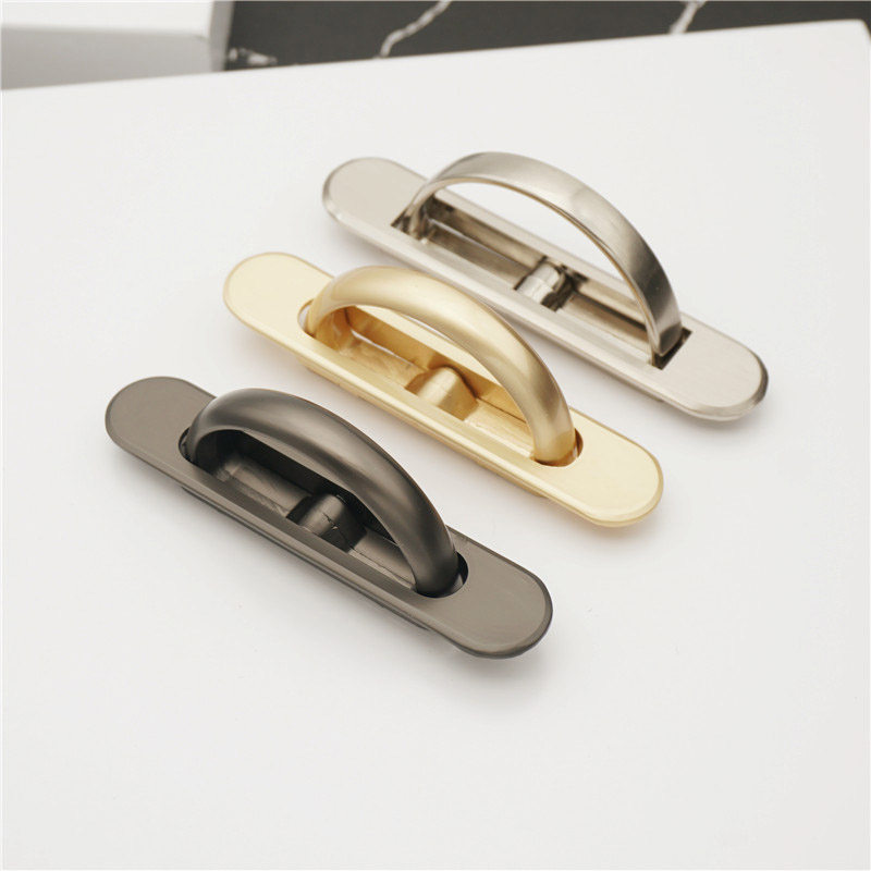 Sun-style tatami handle rear cover hide swivel embedded stainless steel color golden modern minimalist drawer cabinet door