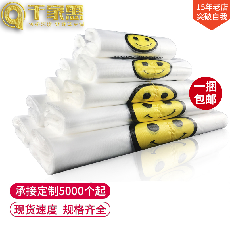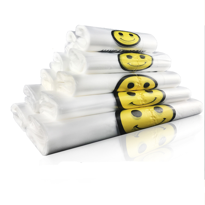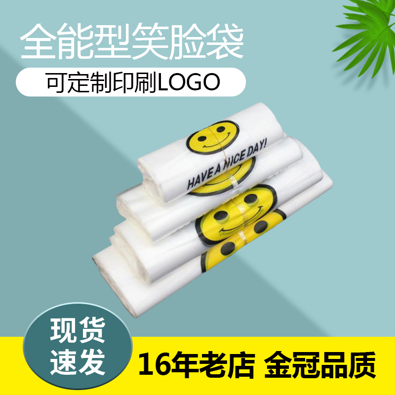 Size transparent smiley face Hand convenient plastic bag fixed do logo food disposable takeaway bag with bag