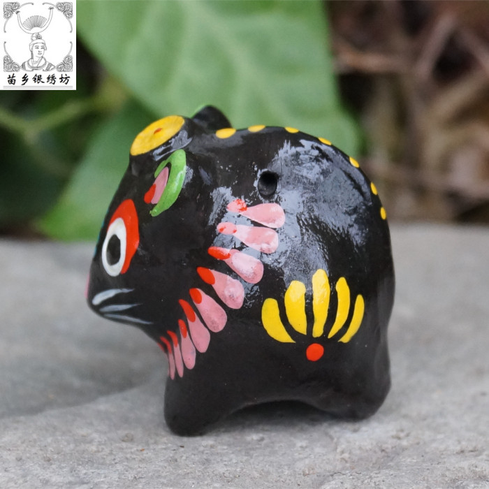 Miaoxiang Silver Embroidery Workshop Guizhou Specialty Intangible Cultural Heritage Twelve Zodiac Spherical Yellow Flat Mud Whistle Meng Meng Meng Rat