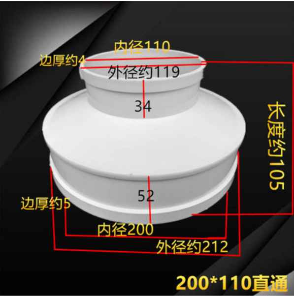 Round pipe exhauster diameter 8 inch variable 6 inch 6 inch variable 4-inch heterodiameter Size head PVC pipe conversion joint